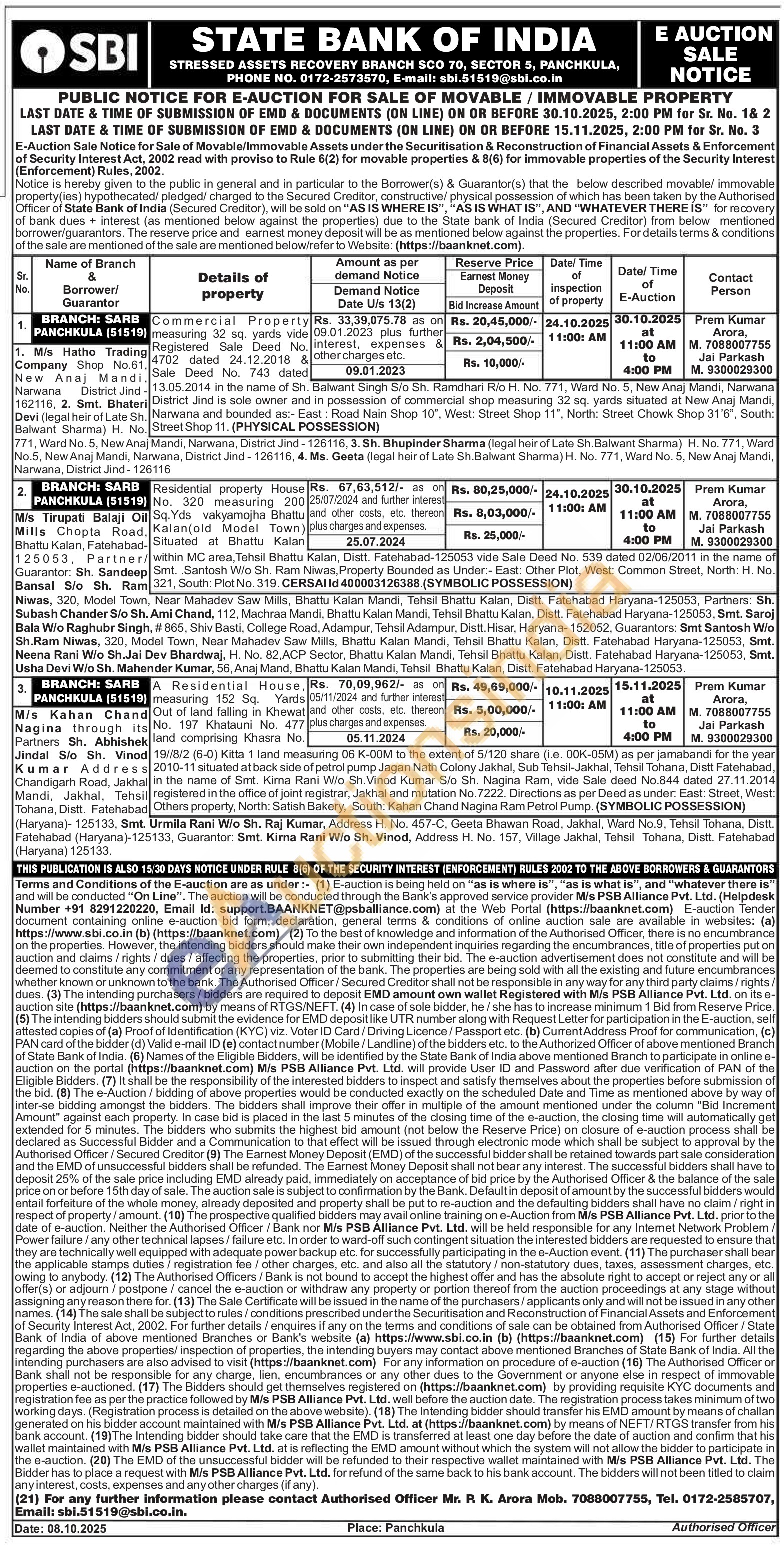 Mr Prem Kumar Arora: 7088007755 Μr Jai Parkash:9300029300