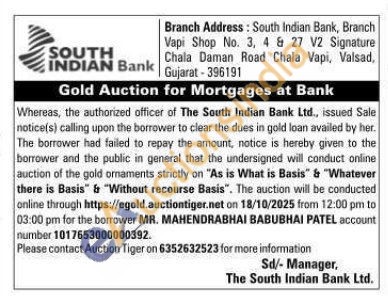 South Indian Bank Gold Auctions Auction in Valsad