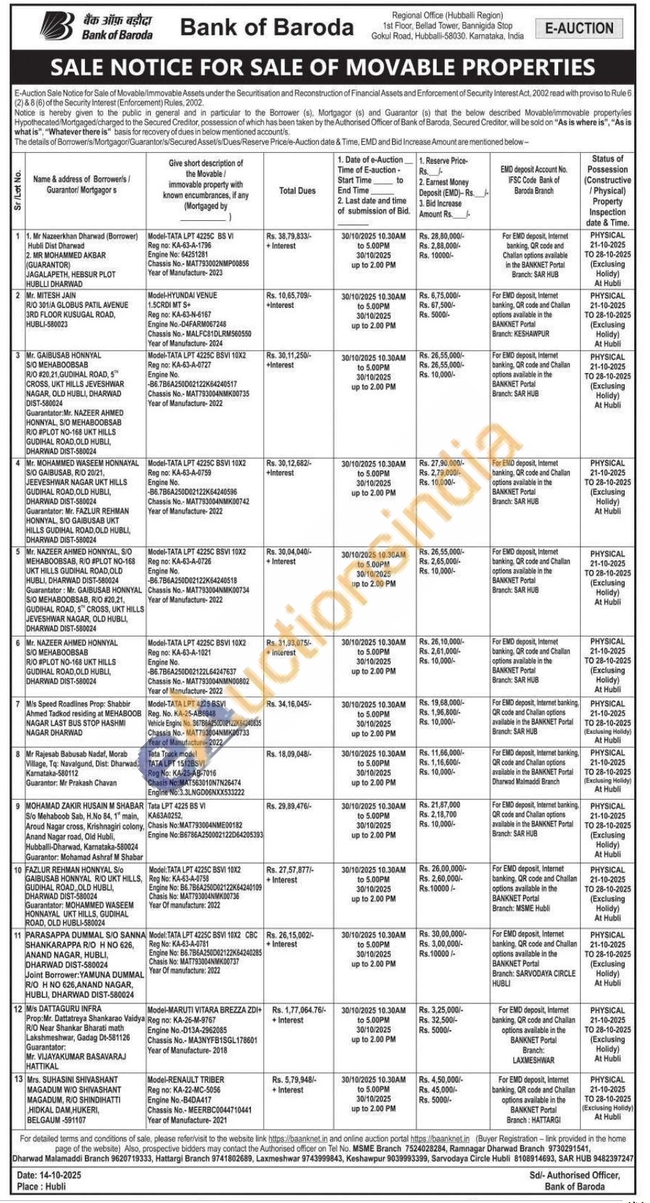 3) Model-TATA LPT 4225C BSVI 10X2 Reg no: KA-63-A-0727 Engine No. -86.786A250D02122K64240517 Chassis No.-MAT793004NMK00735 Year of Manufacture-2022