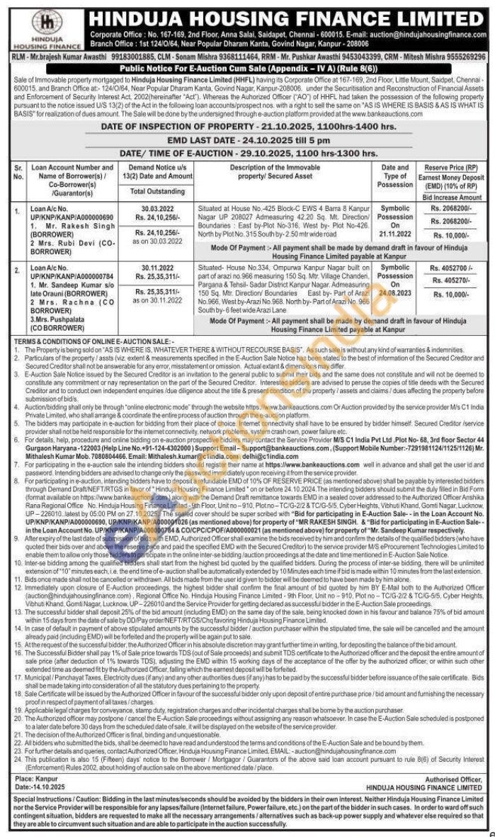 Situated at House No. 425 Block-C EWS 4 Barra & Kanpur Nagar UP 208027 Admeasuring 42.20 Sq. Mt. Direction Boundanes East by-Plot No-316, West by Plot No-425 North by Plot No. 315 South by-2.50 mtr aideroad