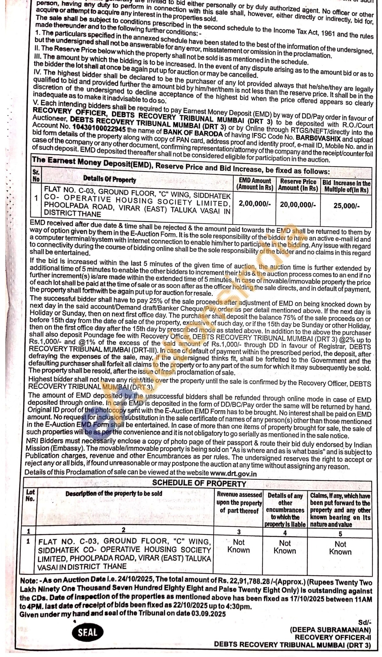FLAT NO. C-03, GROUND FLOOR, "C" WING, SIDDHATEK CO-OPERATIVE HOUSING SOCIETY LIMITED, PHOOLPADA ROAD, VIRAR (EAST) TALUKA VASAI IN DISTRICT THANE