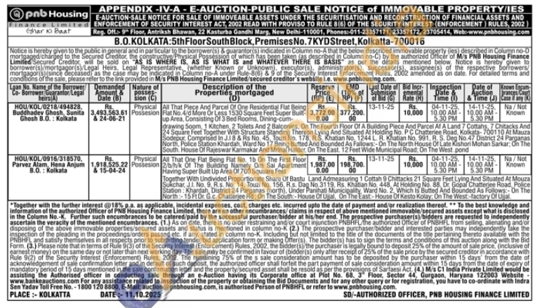 All That One Flat Being Flat No. 1b On The First Floor 2/b/hvk Of The Building Namely Om Sai Apartment Having Super Built Up Area Of 700 Squuare Feet Together With Undivided Proportionate Share Of Bastu Land Admeasuring 1 Cottah 9 Chittacks 21 Square Feet Lying And Situated At Mouza Sukchar, J.1. No. 9. R.s. No. 14, Touzi No. 156, R.s. Dag No.3119, Rs, Khatian No. 448, At 48, At Holding No. 88. Dr. Gopal Chatterjee Road, Police Station: Khardah, District 24 Parganas (north). Under Panihati Municipality Ward No. 2. Which is Butted And Bounded As Follows:- On The North-15 Ft Dr. G.c. Chatterjee Rd, On The South House Of Ujjal, On The East:-House Of Kesto Kolay, On The West:-factory Of Ujal
