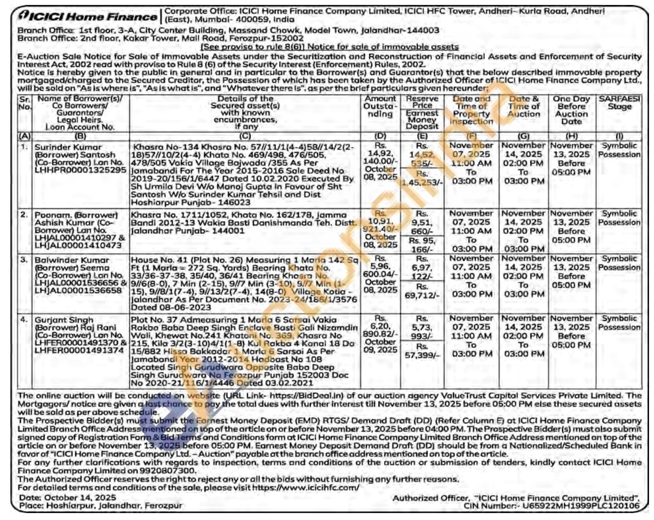 4) Plot No. 37 Admeasuring 1 Maria 6 Sarsai Vakia Rakbo Baba Deep Singh Enclave Basti Gali Nizamdin Wali, Khewat No.241 Khatoni No. 369, Khasra No 215, Kila 3/2(3-10)4/1(1-8) Kul Rakba 4 Kanal 18 Da 15/882 Hisso Bakkadar 1 Morla 6 Sarsai As Per Jamabandi Year 2012-2014 Hadbast No 108 Located Singh Gurudwara Opposite Babo Deep Singh Gurudwara No Ferozpur Punjab 152003 Doc No 2020-21/116/1/4446 Dated 03.02.2021