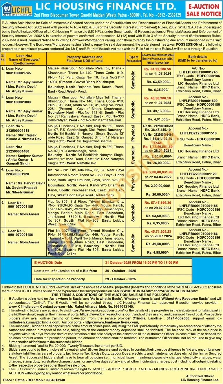 1) Mauza- Khusrupur, Mohallah- Miya Toli, Thana Khushrupur, Thana No-140, Thana Code- 019, PNo. 185 Part, Khata No- 16, Tauji No-2114/14994, (Present-Govt of Bihar), Khushrupur, Boundary-North- Rajendra Ram, South - Pond, East-Road, West-Pond
