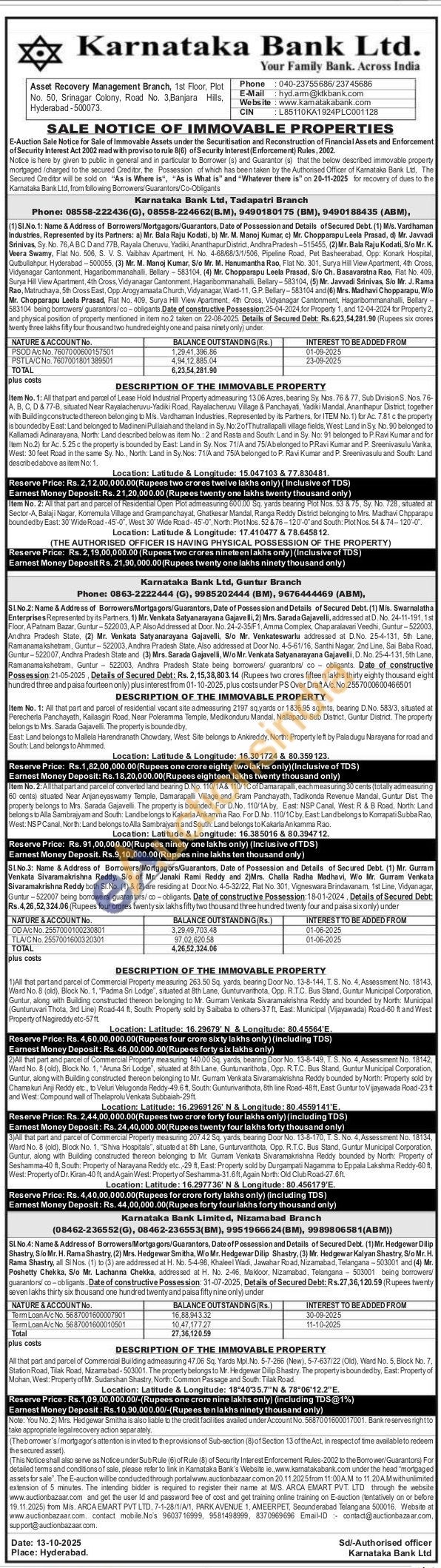 Item No. 1: All that part and parcel of Lease Hold Industrial Property admeasuring 13.06 Acres, bearing Sy. Nos. 76 & 77, Sub Division S. Nos. 76-A, B, C, D & 77-B, situated Near Rayalacheruvu-Yadiki Road, Rayalacheruvu Village & Panchayati, Yadiki Mandal, Ananthapur District, together with Building constructed thereon belonging to Mis. Vardhaman Industries, Represented by its Partners, for ITEM No. 1) for Ac. 7.81 c the property is bounded by East: Land belonged to Madineni Pullaiah and the land in Sy. No: 2 of Thutrallapalli village fields, West Land in Sy. No. 90 belonged to Kallamadi Adinarayana, North: Land described below as item No.: 2 and Rasta and South: Land in Sy. No: 91 belonged to P.Ravi Kumar and for Item No.2) for Ac. 5.25 c the property is bounded by East Land in Sy. Nos: 71/A and 75/Abelonged to P.Ravi Kumar and P. Sreenivasulu Vanka, West: 30 feet Road in the same Sy. No., North: Land in Sy. Nos: 71/A and 75/A belonged to P. Ravi Kumar and P. Sreenivasulu and South: Land described above as item No: 1.