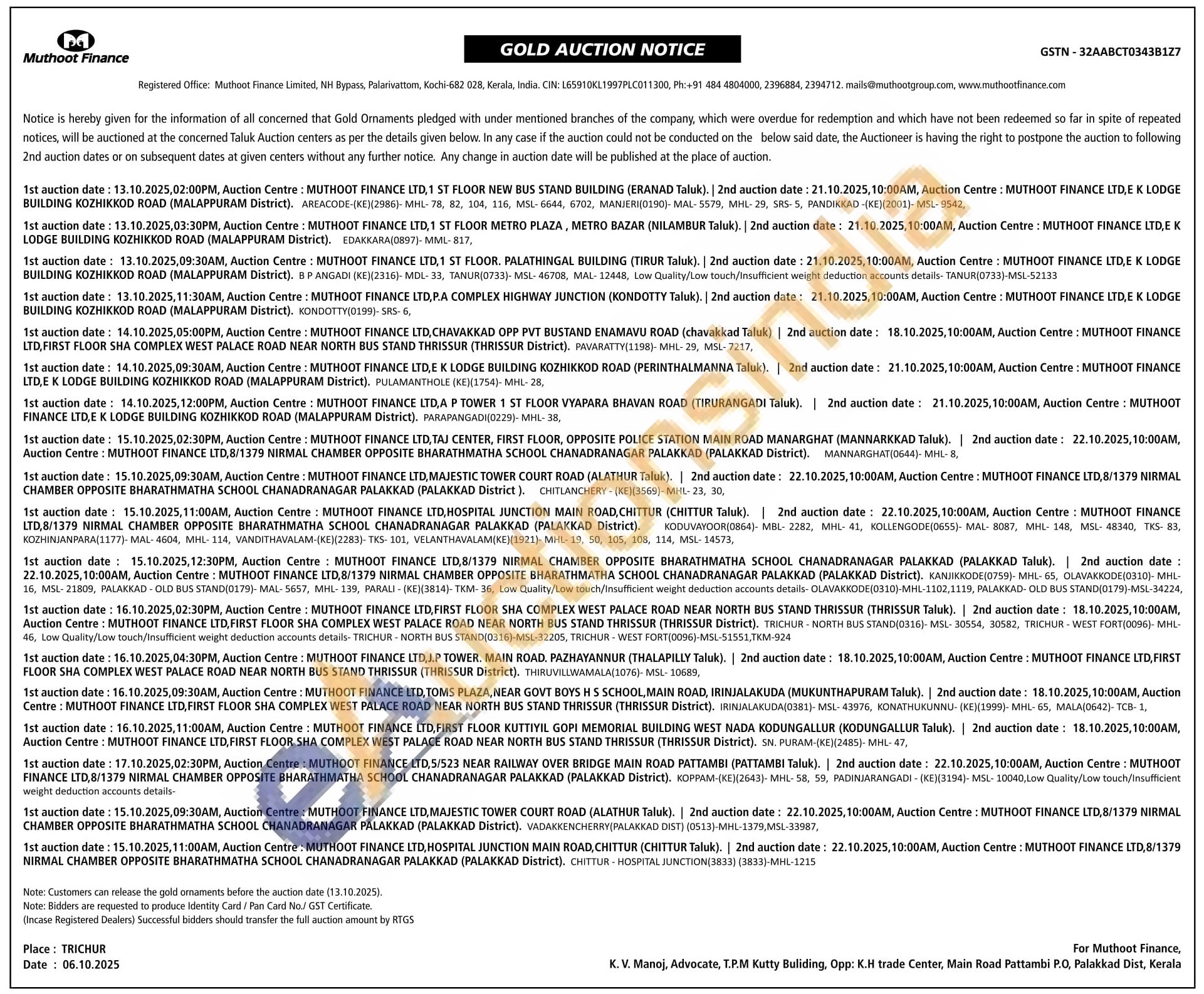 Muthoot Finance Ltd Gold Auctions Auction in Jaipur