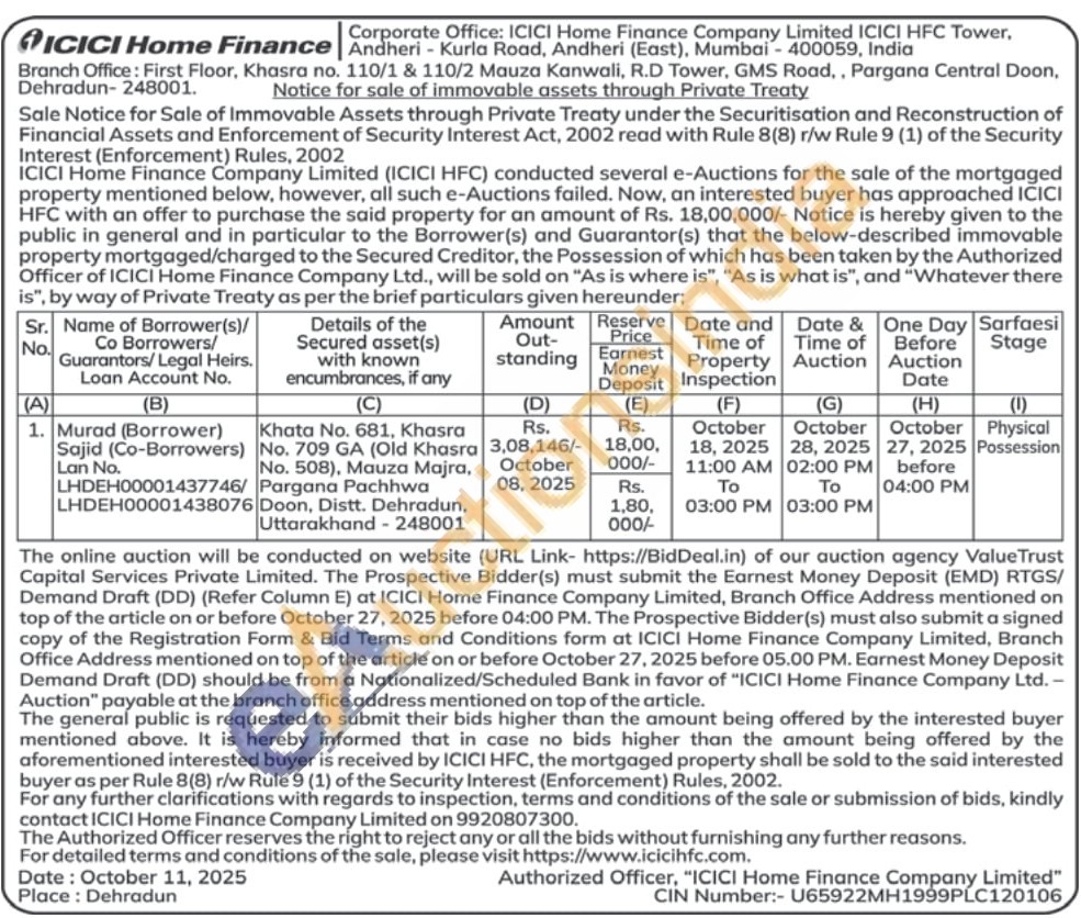 Khata No. 681, Khasra No. 709 GA (Old Khasra No. 508), Mauza Majra, Pargana Pachhwa Doon, Distt. Dehradun, Uttarakhand - 248001