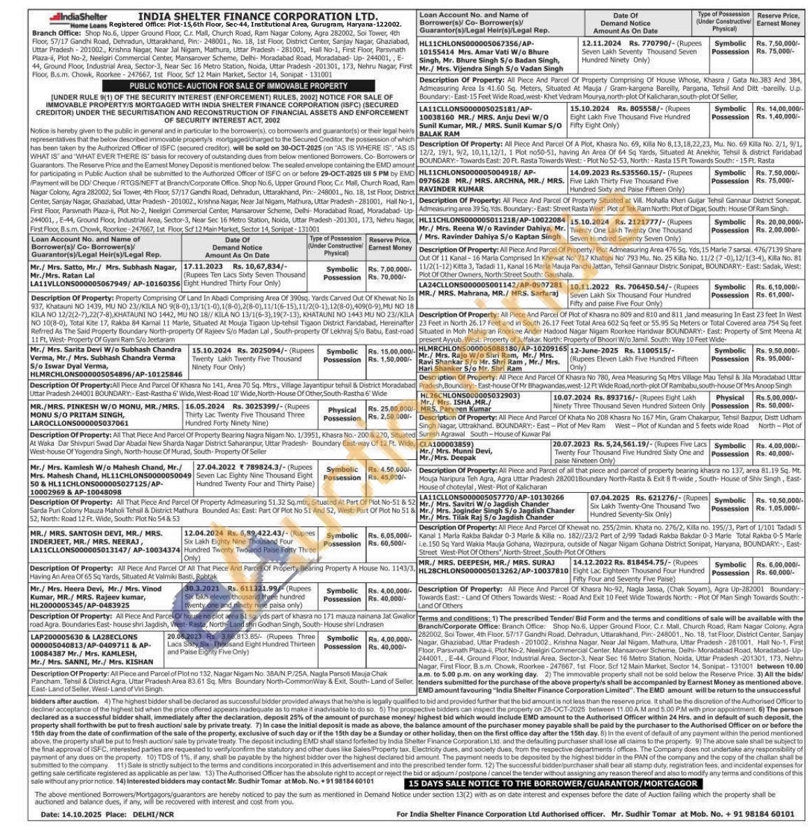 Description Of Property: All Piece And Parcel Of Khewat no. 255/2min, Khata no. 276/2, Killa no. 195//3, Part of 1/101 Tadadi 5 Kanal 1 Marla Rakba Bakdar 0-3 Marle & Killa no. 182//23/2 Part of 2/99 Tadadi Rakba Bakdar 0-3 Marie Total Rakba 0-5 Marle 1.e.150 Sq Yard Wakia Mauja Gohana, Wazirpura, outside of Nagar Nigam Gohana District Sonipat, Haryana, BOUNDARY, East Street West-Plot Of Others", North Street, South-Plot Of Others