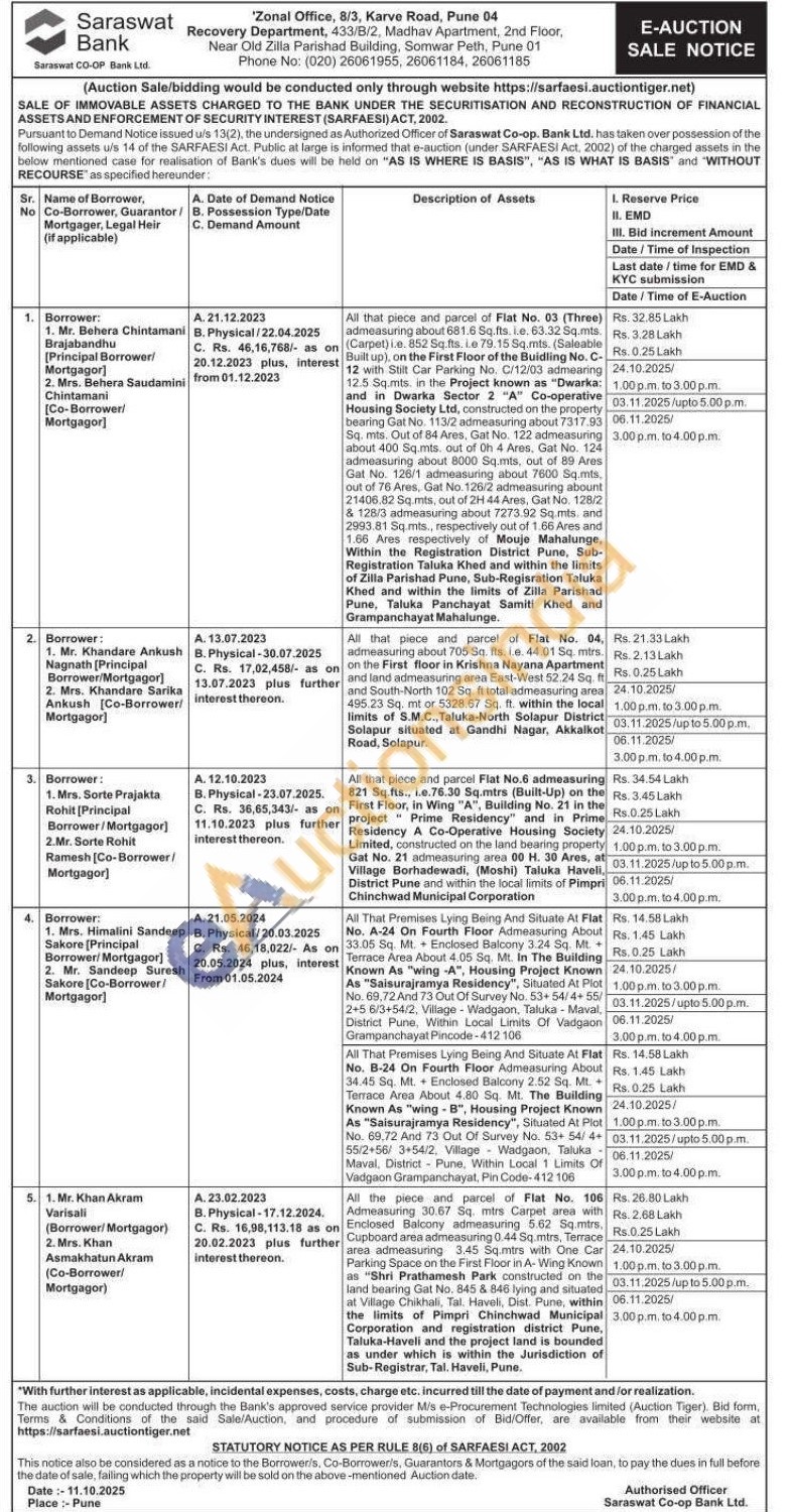 All that piece and parcel Flat No.6 admeasuring 821 Sq.fts., i.e.76.30 Sq.mtrs (Built-Up) on the First Floor, in Wing "A", Building No. 21 in the project" Prime Residency" and in Prime Residency A Co-Operative Housing Society Limited, constructed on the land bearing property Gat No. 21 admeasuring area 00 H. 30 Ares, at Village Borhadewadi, (Moshi) Taluka Haveli, District Pune and within the local limits of Pimpri Chinchwad Municipal Corporation