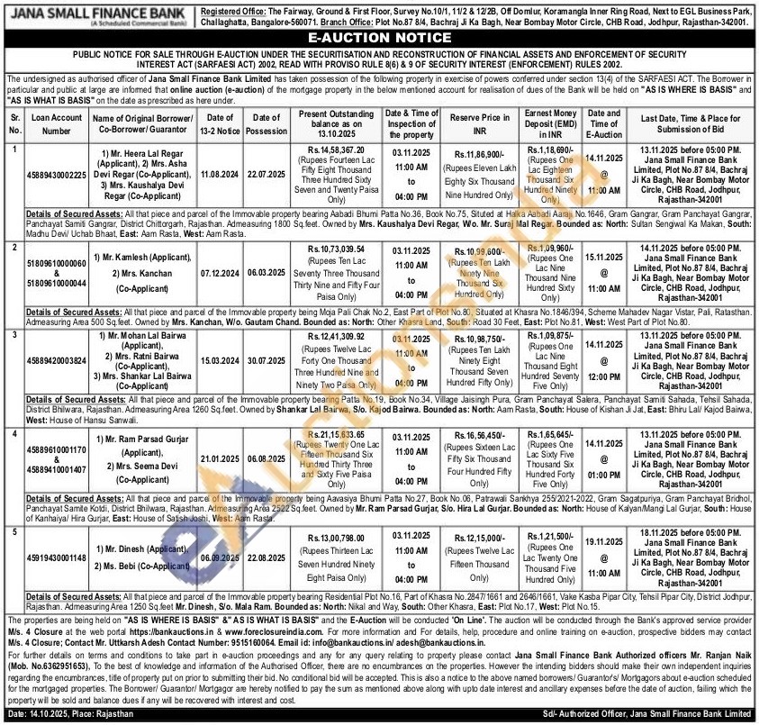 Details of Secured Assets: All that piece and parcel of the Immovable property bearing Aabadi Bhumi Patta No.36, Book No.75, Situted at Halka Aabadi Aaraji No. 1646, Gram Gangrar, Gram Panchayat Gangrar, Panchayat Samiti Gangrar, District Chittorgarh, Rajasthan. Admeasuring 1800 Sq feet. Owned by Mrs. Kaushalya Devi Regar, Wo. Mr. Suraj Mal Regar. Bounded as: North: Sultan Sengiwal Ka Makan, South: Madhu Devil Uchab Bhaat, East: Aam Rasta, West: Aam Rasta.