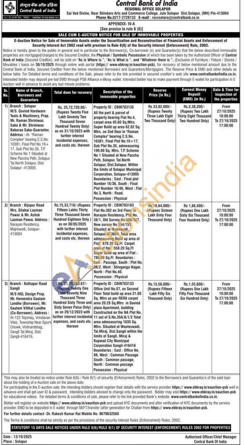 Property ID: CBIN703133 Office Unit No.07, on Second Floor Total build up area 21.60 Sq. Mtrs as per RERA carpet area 20.29 Sq.Mtrs in Govind plaza Apartment, building Constructed on the NA Plot No. 11 out of S.No.35A/A/1/2 Total area admeasuring 1035 Sq. Mtrs. Situated at Wanleswadi, Tal.Miraj, Dist.Sangli within the limits of Sangli. Miraj & Kupwad City Municipal Corporation Sangli-416416 Boundaries: East: Office No. South: Common passage, North: Common passage 08, West: Common Passage Possession: