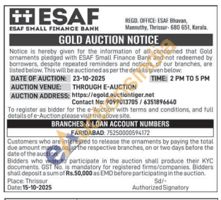 ESAF SMALL FINANCE BANK Gold Auctions Auction in Faridabad