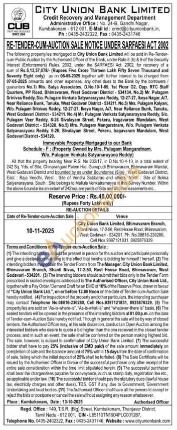 All that the property bearing Near R.S. No 232/17, in D.No.10-4-10, in a total extent of 242 Sq. Yds. of Site. Chinarangani Palem Hio. Gunupudi Bhimavaram, Bhimavaram Mandal, West Godavari District and bounded by as under Boundaries (Site): West Godavari District, East Raja Veedhi, West Site of Vendra Subbarao and others, North Site of Bokka Satyanarayana, South Site belongs to Mallula Venkatramayya in this Survey Number. Within the above boundaries an extent of 242 square yards of Site and all other easements etc..
