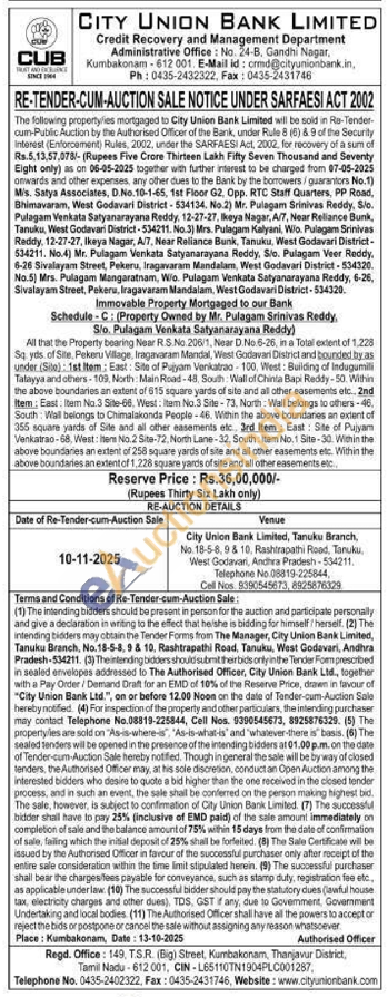 All that the Property bearing Near R.S.No.206/1, Near D.No 6-26, in a Total extent of 1.228 Sq yds of Sile, Pekeru Village, Iragavaram Mandal, West Godavari District and bounded.by.as under (Sile): 1st Item: East: Site of Pujyam Venkatraa-100, West: Building of indugumili Tatayya and others-109, North: Main Road-48, South Wall of Chinta Bapi Reddy-50. Within the above boundaries an extent of 615 square yards of site and all other easements etc.. 2nd Item: East: Item No.3 Site-66, West: Item No.3 Site-73, North Wall belongs to others-46, South Wall belongs to Chimalakonda People-46. Within the above boundanes an extent of 355 square yards of Site and all other easements etc. 3rd Item: East: Site of Pujyam Venkatrao-68, West: Item No.2 Site-72, North Lane-32, South: Item No.1 Site-30. Within the above boundaries an extent of 258 square yards of site and all other easements etc. Within the above boundaries an extent of 1,228 square yards of site and all other easements etc