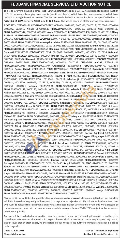 Fedbank Financial Services Ltd Gold Auctions Auction in Pune