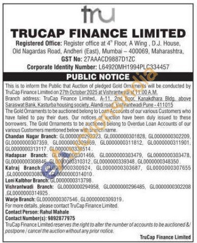 TruCap Finance Ltd Gold Auctions Auction in Hooghly