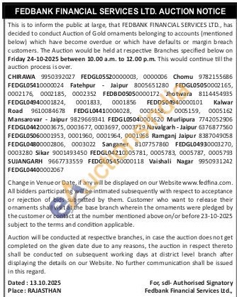 Fedbank Financial Services Ltd Gold Auctions Auction in Jhunjhunu