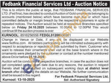 Fedbank Financial Services Ltd Gold Auctions Auction in Kurnool