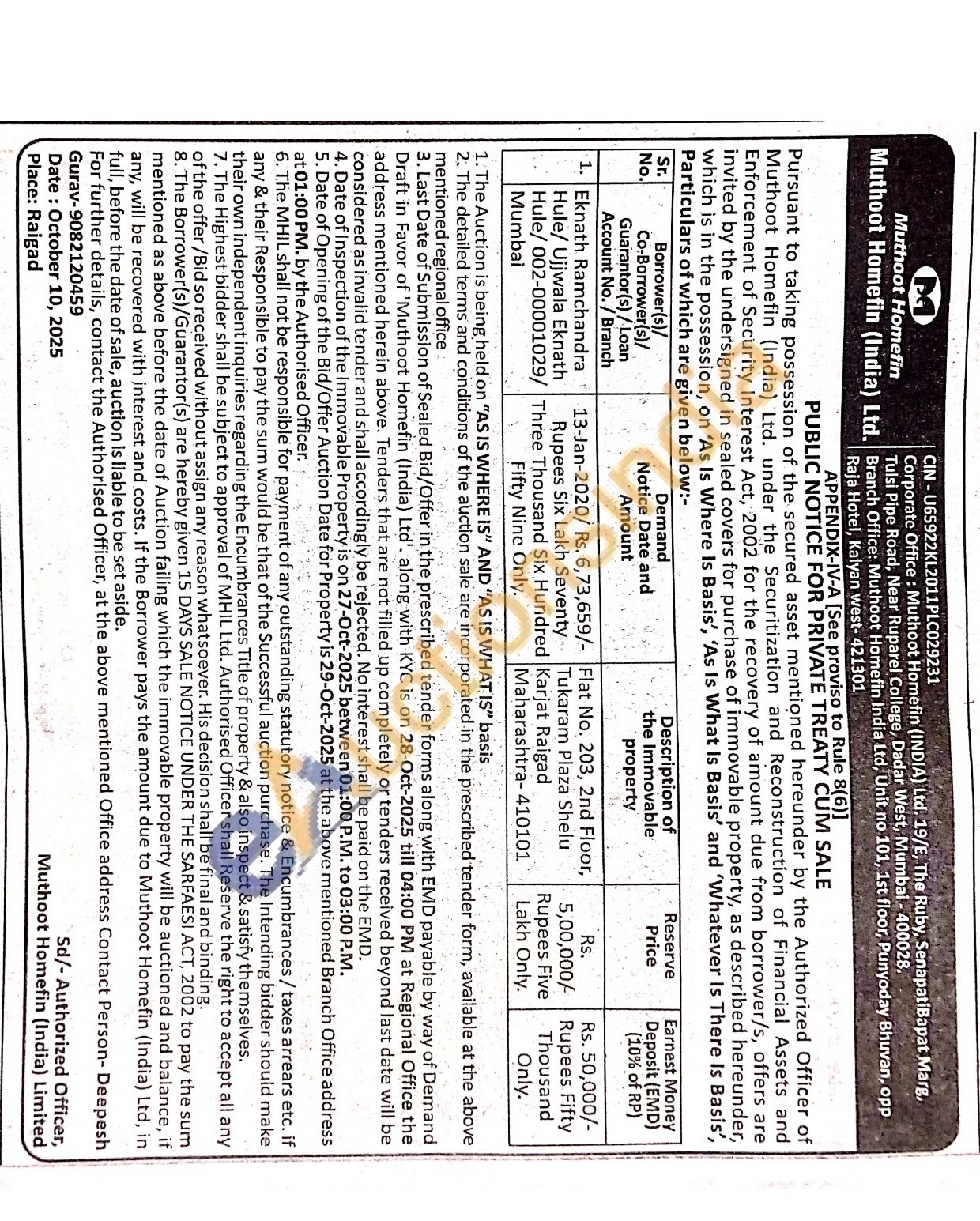 Flat No. 203, 2nd Floor, Tukaram Plaza Shelu Karjat Raigad Maharashtra-410101