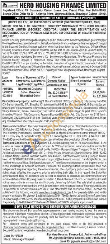 All that right, title and interest of Property bearing City Survey No 5158. City Survey Ward No 4/A, Sheet No 43, admeasuring 66.03 Sq. Mts. land and 96.48 Sq.mts. (as per Bhavnagar Palka Assessment form) known as Kanbivad Vanamona Na Delo, Sardar chook, of Moje Willage Kanbivad, Taluka: Bhavnagar, Sub District and District: Bhavnagar, Gujarat. With Common Amenities Written in Title Document Property Bounded By: North Adj. City Survey No 5159 land South Ad City Survey No 5157 land, East: Adi. Vado and then after City Survey No 5162 land. West Adj Road and then after City Survey No 5305 and 5308 land