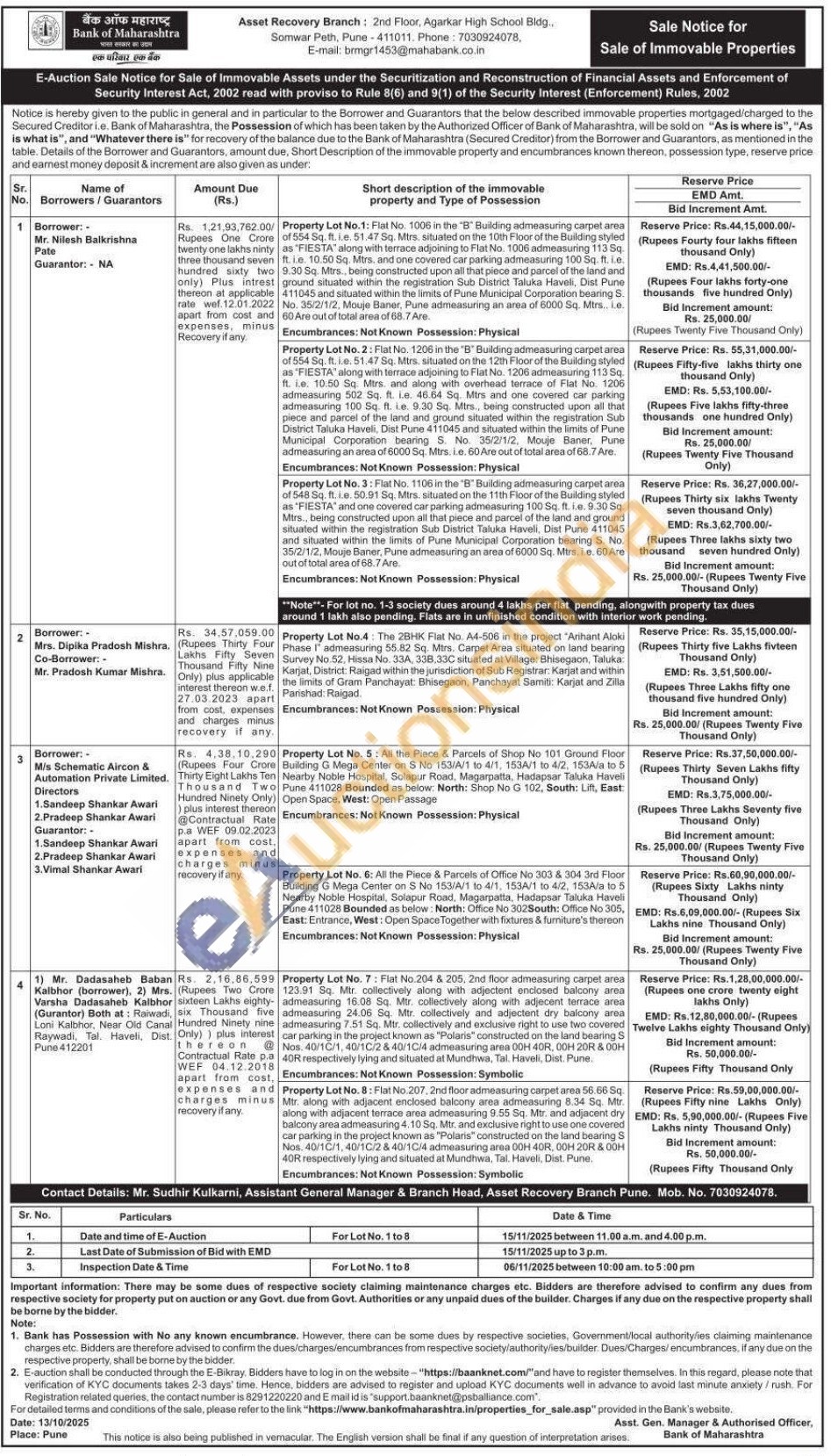 Property Lot No. 8: Flat No. 207, 2nd floor admeasuring carpet area 56.66 Sq. Mtr. along with adjacent enclosed balcony area admeasuring 8.34 Sq. Mtr. along with adjacent terrace area admeasuring 9.55 Sq. Mtr. and adjacent dry balcony area admeasuring 4.10 Sq. Mtr, and exclusive right to use one covered car parking in the project known as "Polaris" constructed on the land bearing S Nos. 40/10/1, 40/1C/2 & 40/10/4 admeasuring area 00H 40R, 00H 20R & 00H 40R respectively lying and situated at Mundhwa, Tal. Haveli, Dist. Pune.