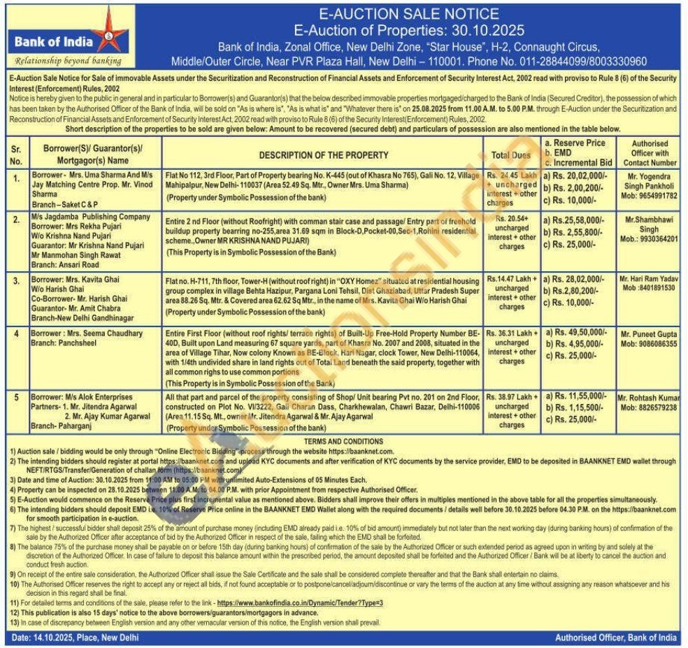 Flat no. H-711, 7th floor, Tower-H (without roof right) in "OXY Homez" situated at residential housing group complex in village Behta Hazipur, Pargana Loni Tehsil, Dist Ghaziabad, Uttar Pradesh Super area 88.26 Sq. Mtr. & Covered area 62.62 Sq Mtr., in the name of Mrs. Kavita Ghai Wo Harish Ghai (Property under Symbolic Possession of the bank)
