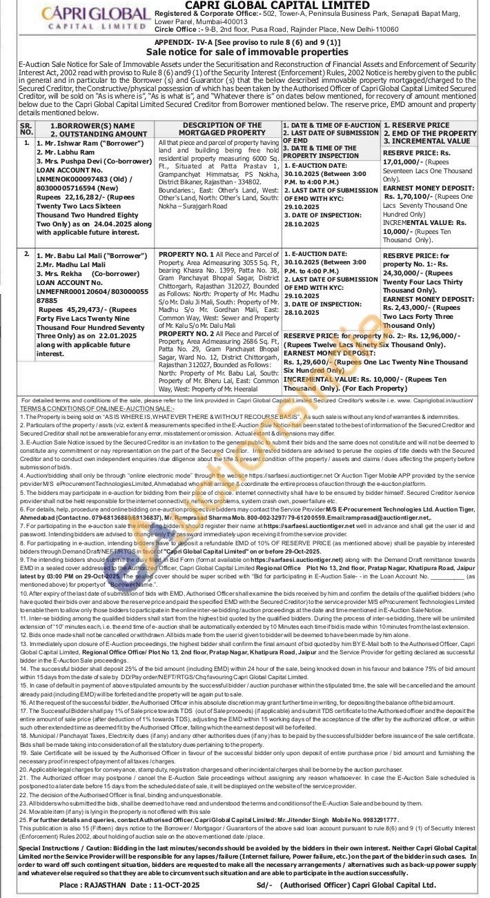 All that piece and parcel of property having land and building being free hold residential property measuring 6000 Sq. Ft., Situated at Patta Prastav 1, Grampanchyat Himmatsar, PS Nokha, District Bikaner, Rajasthan - 334802. Boundaries:, East: Other's Land, West: Other's Land, North: Other's Land, South: Nokha-Surajgarh Road