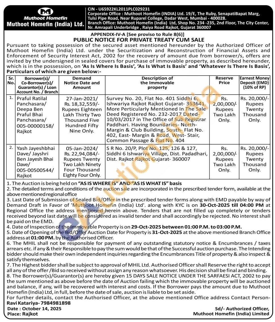 SR No. 20/P, Plot No. 125, 126 & 127, Siddhi 6 Ishwariya Village, Dist. Padadhari, Dist. Rajkot Rajkot Gujarat- 360007