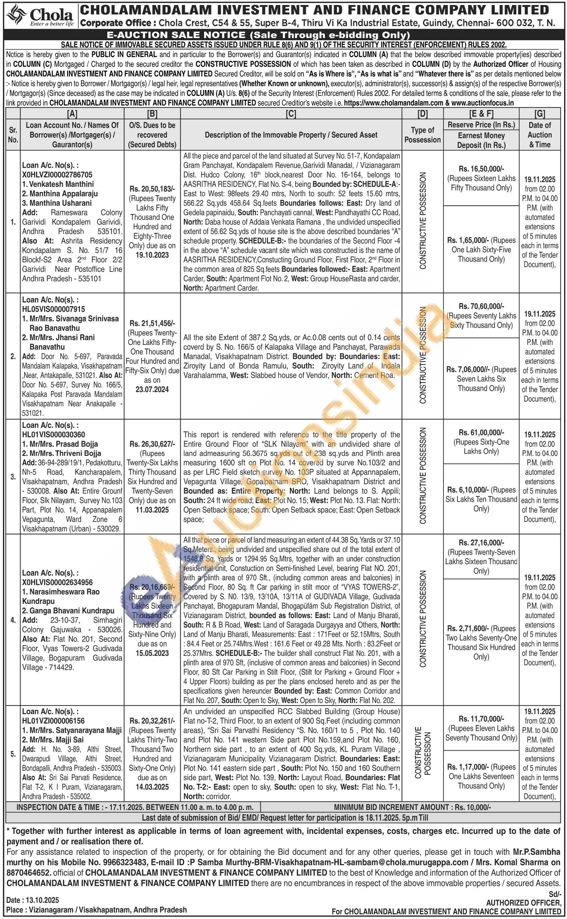 All that piece or parcel of land measuring an extent of 44 38 Sq. Yards or 37.10 Sq. Meters, being undivided and unspecified share out of the total extent of 1548.8 Sq. Yards or 1294.95 Sq.Mirs, together with an under construction residential unit, Constuction on Semi-finished Level, bearing Flat NO. 201, with a plinth area of 970 Stt., (including common areas and balconies) in Second Floor, 60 Sq. ft Car parking in stilt moor of "VYAS TOWERS-2" Covered by S. NO. 13/9, 13/10A, 13/11A of GUDIVADA Village, Gudivada Panchayat, Bhogapuram Mandal, Bhogapüfam Sub Registration District, of Vizianagaram District, bounded as follows: East: Land of Manju Bharati, South: R & B Road. West: Land of Saragada Durgayya and Others, North: Land of Manju Bharati, Measurements: East: 171Feet or 52.15Mtrs, South 84.4 Feet or 25.74Mtrs. West: 161.6 Feet or 49.28 Mts. North: 83.2Feet or 25.37Mtrs SCHEDULE-B:- The builder shall construct Flat No. 201, with a plinth area of 970 Sit, (inclusive of common areas and balconies) in Second Floor, 80 Stt Car Parking in Stilt Floor, (Stilt for Parking Ground Floor 4 Upper Floors) building as per the plans enclosed hereto and as per the specifications given hereunder Bounded by: East: Common Corridor and Flat No. 207, South: Open to Sky, West: Open to Sky, North: Flat No. 202