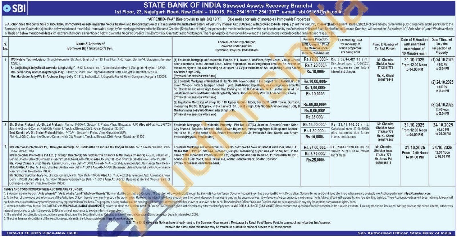 (3) Equitable Mortgage of Shop No. 110, Upper Ground Floor, Sector-14, AKD Tower, Gurgaon, measuring 400 Sq. ft Approx. in the name of Sh. Jasjit Singh Jolly S/o Sh Arvinder Singh Jolly & Mrs Harvinder Jolly W/o Sh Arvinder Singh Jolly. (Physical Possession with Bank)