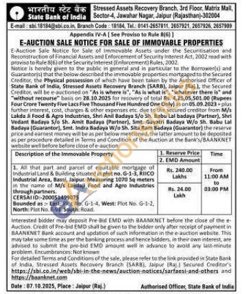 1. All that part and parcel of equitable mortgage of Industrial Land & Building situated at plot no. G-1-3, RIICO Industrial Area, Bassi, Jaipur, Measuring 1070 Sq meters in the name of M/s Lakdaji Food and Agro Industries through partners.