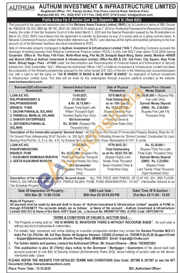 Authorized Officer: Mr. Gaurav Dhanve (Mob: 7020825520
