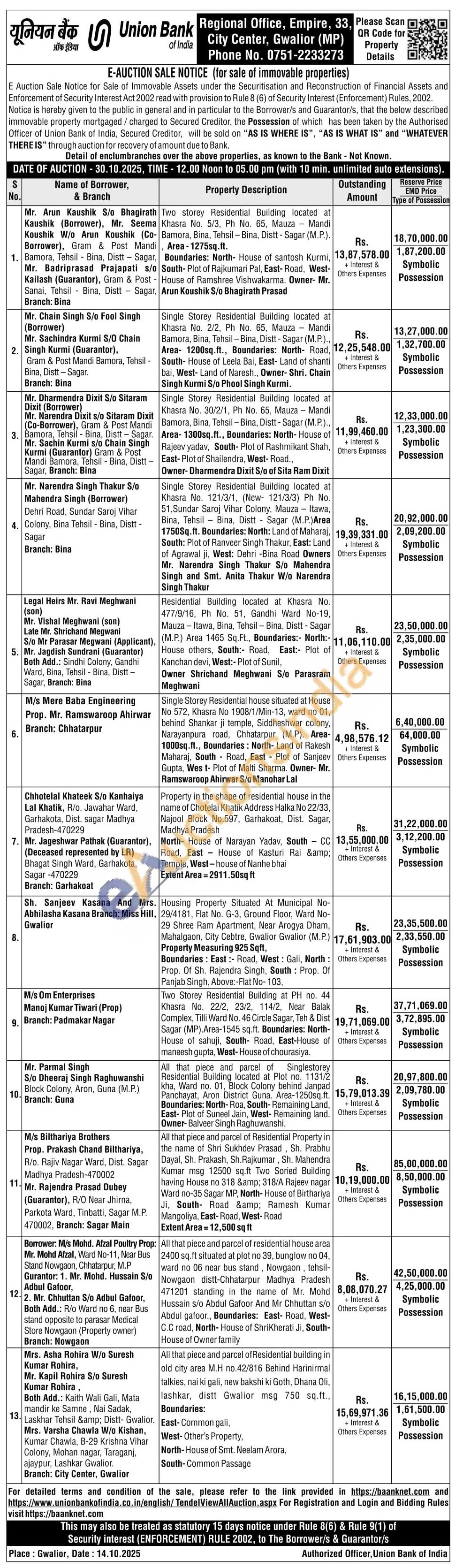 8) Housing Property Situated At Municipal No-29/4181, Flat No. G-3, Ground Floor, Ward No-29 Shree Ram Apartment, Near Arogya Dham, Mahalgaon, City Cebtre, Gwalior Gwalior (M.P.) 1 Property Measuring 925 Sqft, Boundaries: East: Road, West: Gali, North: Prop. Of Sh. Rajendra Singh, South: Prop. Of Panjab Singh, Above:-Flat No-103,