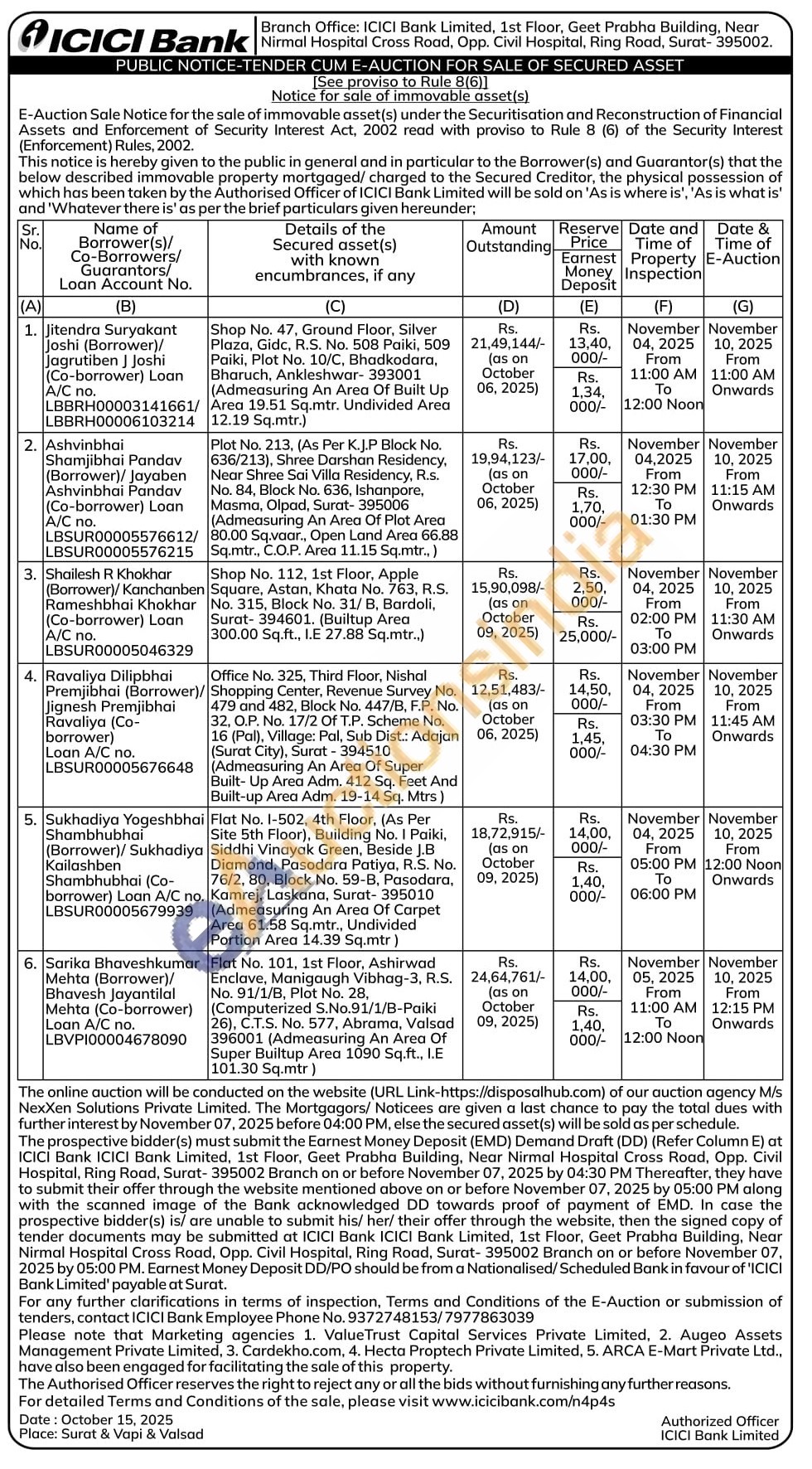 6) Flat No. 101, 1st Floor, Ashirwad Enclave, Manigaugh Vibhag-3, R.S. No. 91/1/B, Plot No. 28, (Computerized S.No.91/1/B-Paiki 26), C.T.S. No. 577, Abrama, Valsad 396001 (Admeasuring An Area Of Super Builtup Area 1090 Sq.ft., I.E 101.30 Sq.mtr)