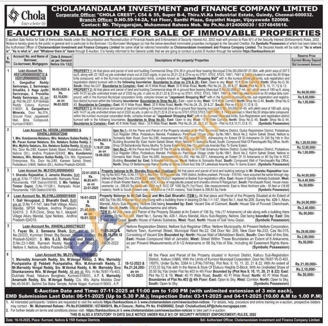 4) Property Belongs to Mr.Gali Gopal and Mrs.Gali Bharathi: ITEM :: All that piece and Parcel of the Property Situated at An Extent of 480 Sq. Yds (60 Ankanams) of site along with a building there in bearing Dr.No. 1-1-147, Ward No. 1. Asst No.209, Survey No. 426-1, Alluru Mandal, Aluru Sub-Registry, Nellore Dist being bounded by: East: Vacant Site of Claimant, South: House Site of Puvvadi Chenchaiah, West: Street, North: Ste of Audilaxmamma and others. ITEM II All that piece and Parcel of the Property Situated at An Extent of 136 Sq. Yds (17 Ankanams) of site along with a building there in bearing Dr.No.1-1-148, Ward No. 1. Survey No. 426-1, Alluru Mandal, Alluru Sub-Registry, Nellore, Dist being bounded by: East: Site of Gall Venu Gopal, South: House of Kakolu Subbarao, West: Road, North: House of Gali Venu Gopal