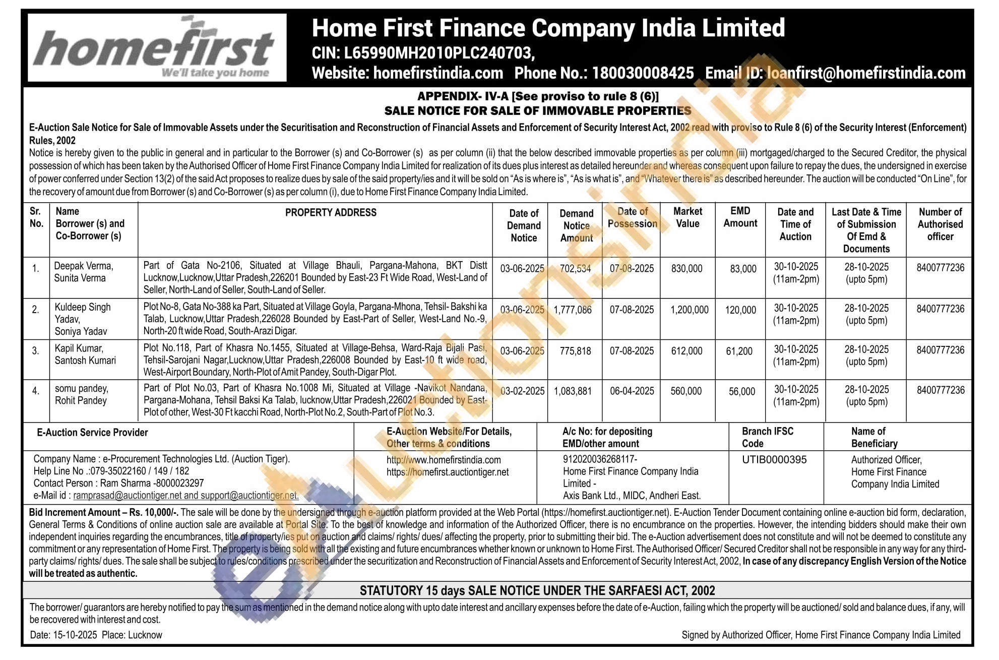 3) Plot No.118, Part of Khasra No.1455, Situated at Village-Behsa, Ward-Raja Bijali Pasi, Tehsil-Sarojani Nagar, Lucknow, Uttar Pradesh, 226008 Bounded by East-10 ft wide road, West-Airport Boundary, North-Plot of Amit Pandey, South-Digar Plot.