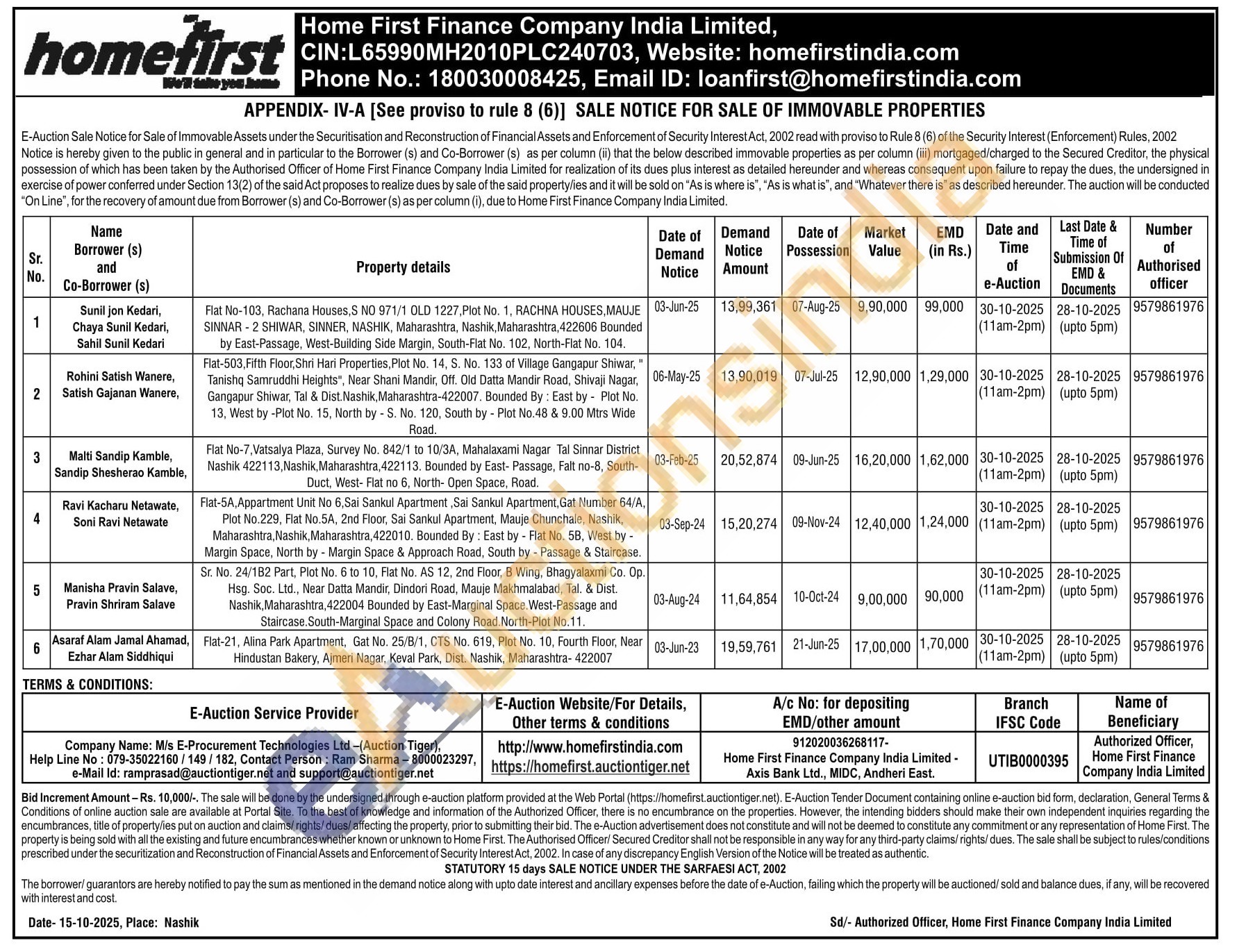 6) Flat-21, Alina Park Apartment, Gat No. 25/B/1, CTS No. 619, Plot No. 10, Fourth Floor, Near Hindustan Bakery, Ajmeri Nagar, Keval Park, Dist. Nashik, Maharashtra-422007