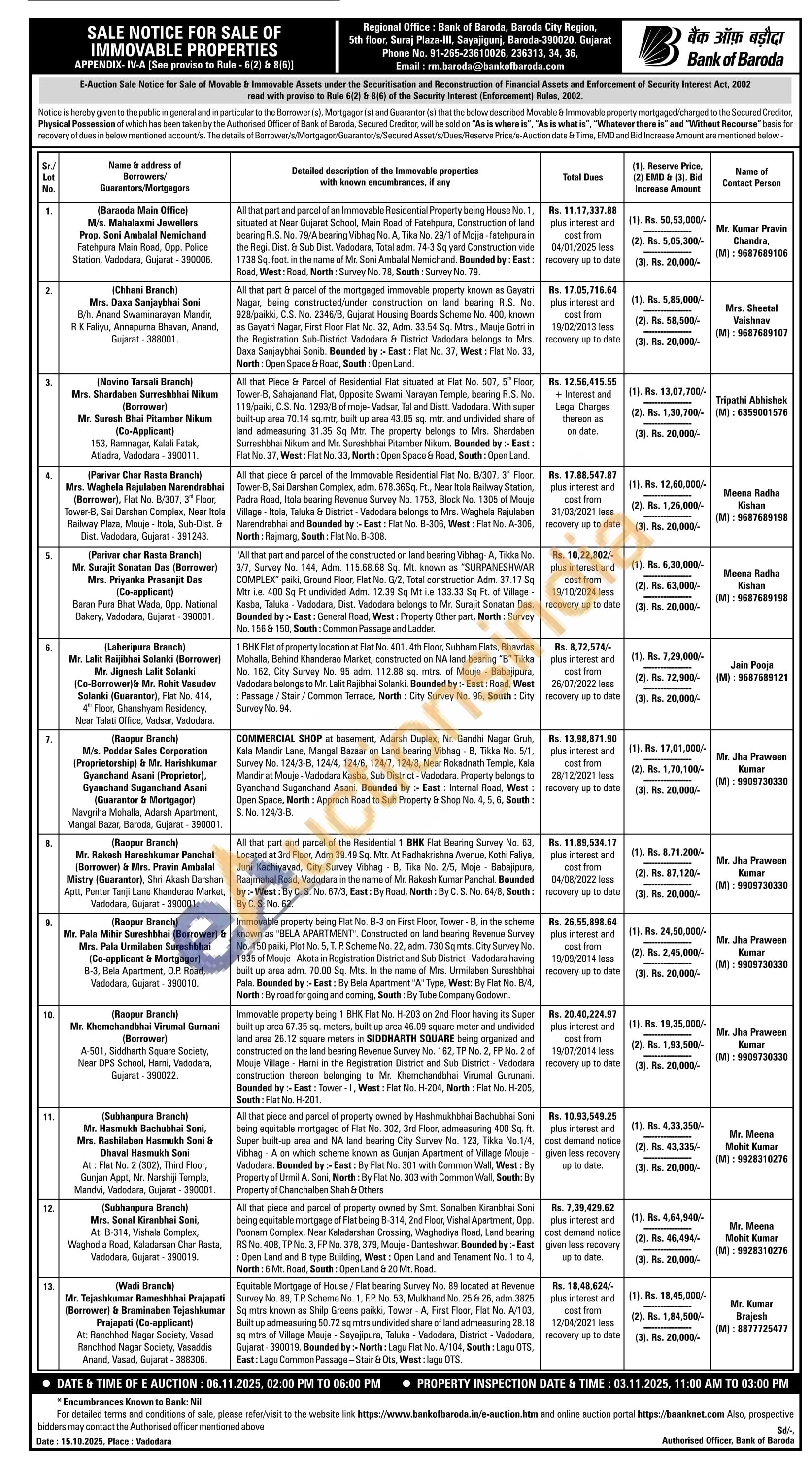 All that piece and parcel of property owned by Hashmukhbhai Bachubhai Soni being equitable mortgaged of Flat No. 302, 3rd Floor, admeasuring 400 Sq. ft. Super built-up area and NA land bearing City Survey No. 123, Tikka No.1/4, Vibhag A on which scheme known as Gunjan Apartment of Village Mouje Vadodara. Bounded by:- East: By Flat No. 301 with Common Wall, West: By Property of Urmil A. Soni, North: By Flat No. 303 with Common Wall, South: By Property of Chanchalben Shah & Others
