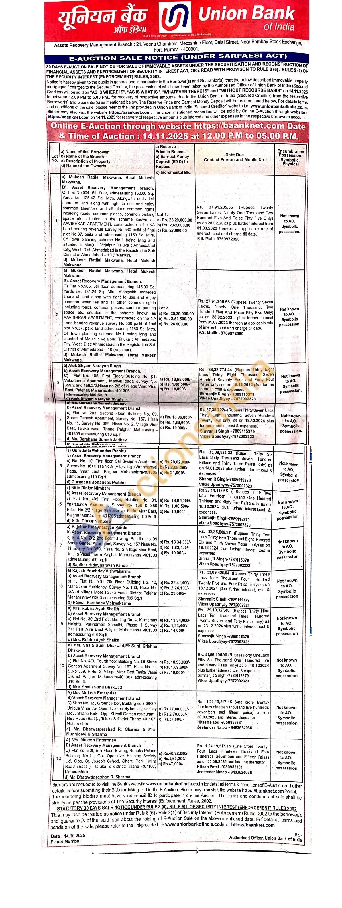 Flat No. 101 First floor, Sal Swapna Apartment, Survey No. 16) Hissa No. 9 (PT.) village Virar,manvel Pada, Virar East, Palghar Maharashtra-401305 admeasuring (10 Sq.ft.