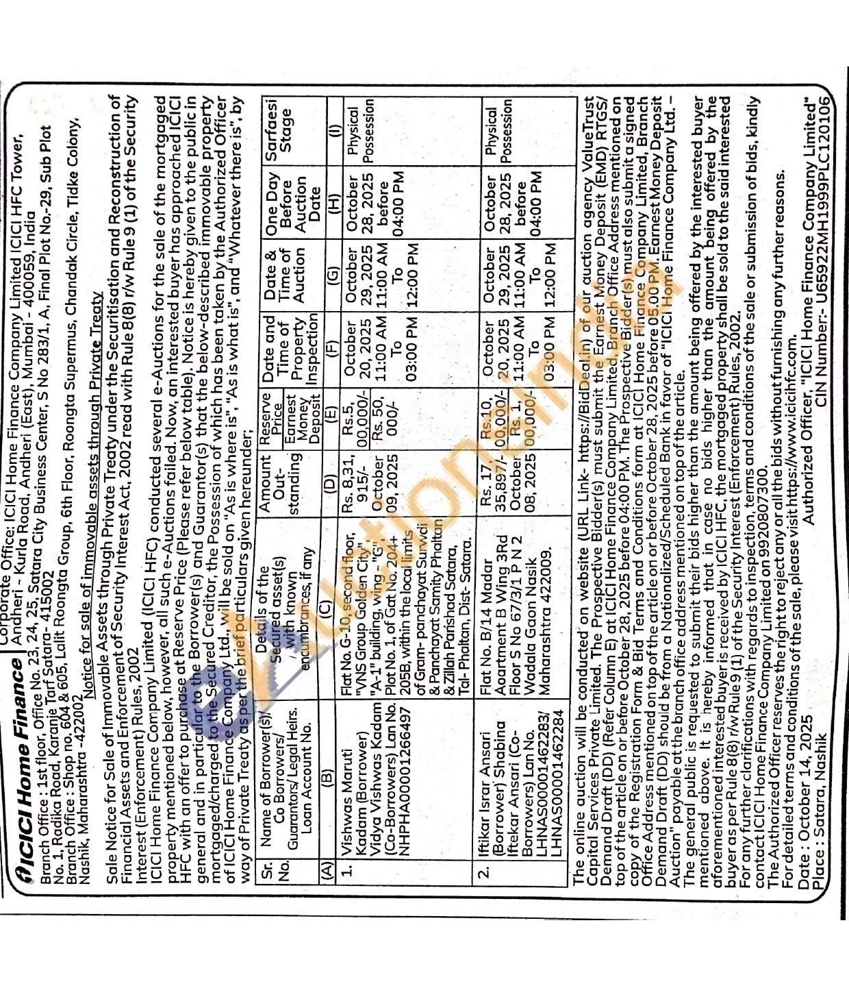 Flat No. G-10, second floor, "VNS Group Golden City", "A-1" building, wing - "G", Plot No. 1, of Gat No. 204+ 205B, within the local limits of Gram-panchayat Surwdi & Panchayat Samity Phaltan & Zillah Parishad Satara, Tal-Phaltan, Dist- Satara