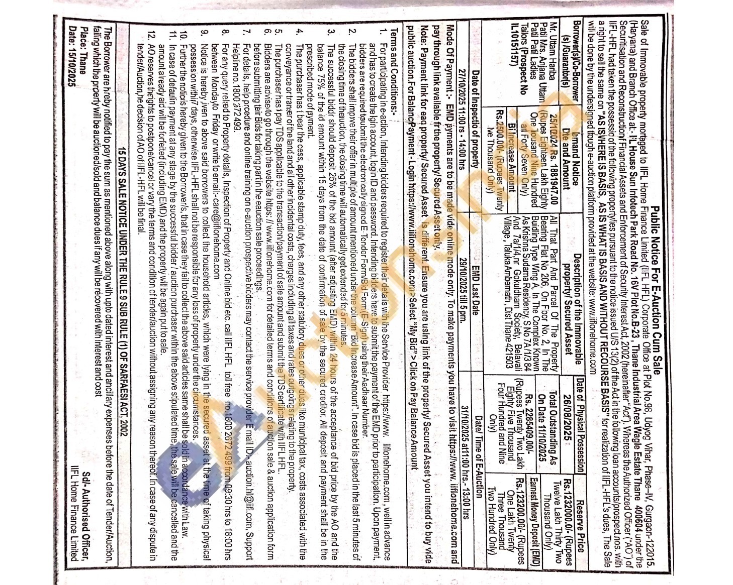 All That Part And Parcel Of The Property Bearing Flat No 206, On Floor No. 2, In The Buidling Type Wing A, In The Complex Known As Krishna Sudama Residency, S No 7A/1/3 84 And 7a/1/4, nr Gokuldham Society, Belavali Village, Taluka Ambernath, Dist Thane 421503