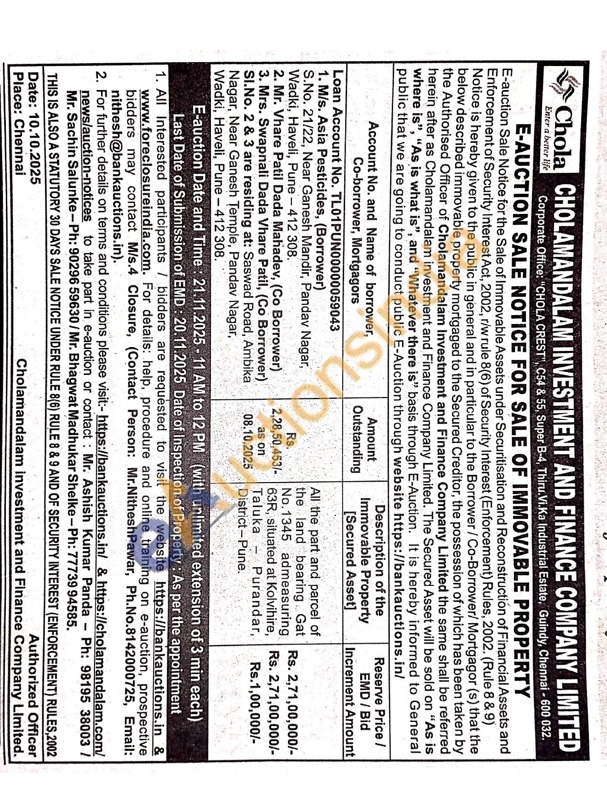 All the part and parcel of the land bearing Gat No.1345 admeasuring 63R, situated at Kolvihire, Taluka Purandar, District-Pune