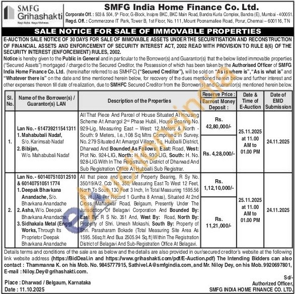 All That Piece And Parcel of House Situated At Housing Scheme At Amargol 2 Phase Hubli, House Bearing No. 929-Lig, Measuring East-West 12 Meters & North-South: 9 Meters, l.e.,108 Sq Mtrs Comprised In Survey. No. 279 Situated At Amargol Village, Tq, Hubballi District, Dharwad And Bounded As Follows: East: Road, West: Plot No. 924-LIG, North: H. No. 930-LIG, South: H. No. 928-LIG With In The Registration District of Dharwad And Sub Registration Office At Hubballi Sub Registrar.