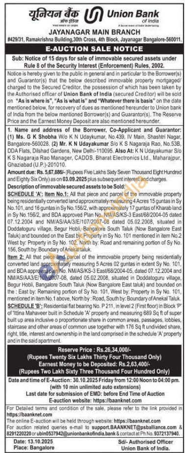 Item 2: All that piece and parcel of the immovable property being residentially converted land approximately measuring 5 Acres 02 guntas in extent Sy No. 101, and BDA approved plan No. NM/AS/KS-3 East/58/2004-05, dated 07.12.2004 and NM/AS/AA3/E/107/2007-08, dated 05.02.2008, situated in Doddatoguru village, Begur Hobli, Bangalore South Taluk (Now Bangalore East taluk) and bounded on the East by: Remaining portion of Sy No. 101, West by: Property in Sy No. 101, mentioned in item No. 1 above, North by: Road, South by: Boundary of Anekal Taluk