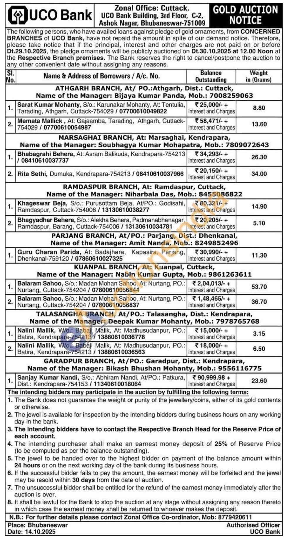 UCO Bank Gold Auctions Auction in Cuttack