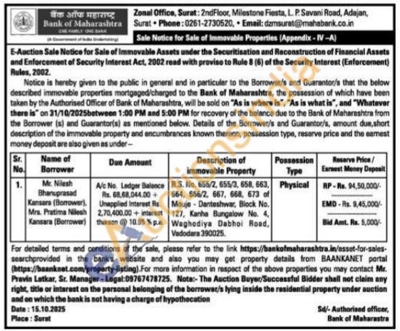 R.S. No. 655/2, 655/3, 658, 663, 664, 666/2, 667, 668, 673 of Mouje Danteshwar, Block No. 127, Kanha Bungalow No. 4, Waghodiya Dabhoi Road, Vadodara 390025.