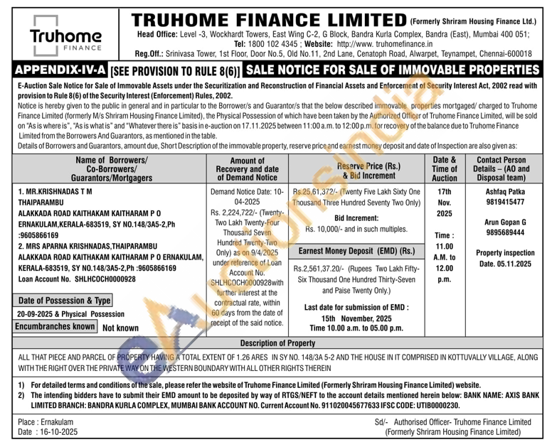 ALL THAT PIECE AND PARCEL OF PROPERTY HAVING A TOTAL EXTENT OF 1.26 ARES IN SY NO. 148/3A 5-2 AND THE HOUSE IN IT COMPRISED IN KOTTUVALLY VILLAGE, ALONG WITH THE RIGHT OVER THE PRIVATE WAY ON THE WESTERN BOUNDARY WITH ALL OTHER RIGHTS THEREIN