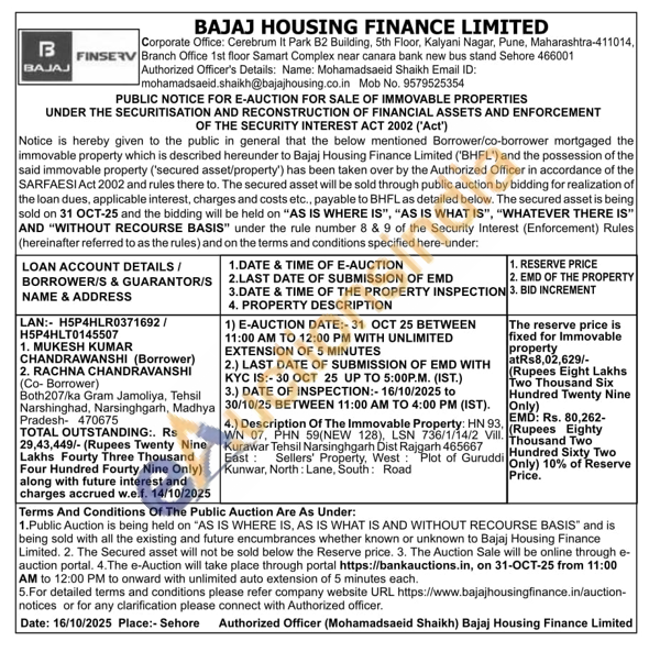 Contact Email ID: mohamadsaeid.shaikh@bajajhousing.co.in Mob No. 9579525354