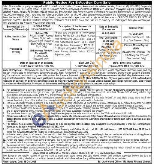 All that part and parcel of the Property Bearing Flat No-205, 2nd Floor, Carpet Ares Admeasuring 256.34 Sq Ft. Built Up Area Adimeasuring 322.51 Sq Ft. Super Bult Up Ares Admeasuing 435.39 50 Ft. Unique Vidhyadeep, Kalwad Scherme Near Railway Station, Jaipur, 302001. Rajasthan Inde