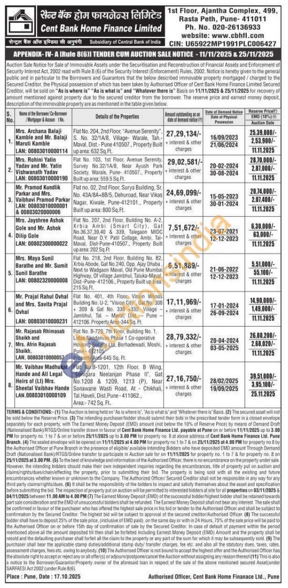 Contact Ph. No. 020-26136933 website: www.cbhfl.com